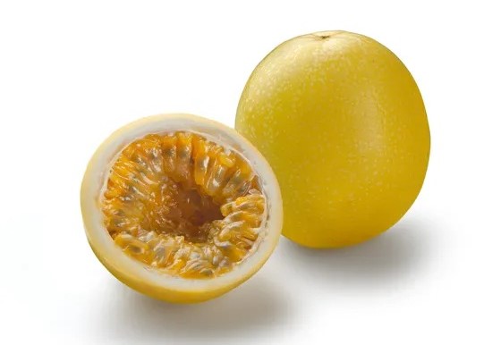 Maracuja belongs to the passion fruit family and is also known as ‘yellow passion fruit’. The oval fruits owe their name to the yellow-green skin. It is leathery and inedible. Inside the maracuja you will find yellow-orange pulp, full of small edible seeds. The taste is sweet and sour.