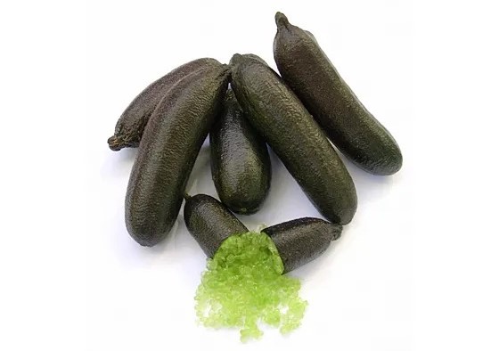 There are several varieties available. Emerald is recognised by its lime-green flesh, with a dark purple to black skin. The Byron Sunrise variety has red-orange flesh and chestnut brown skin. Yellow owes its name to the bright yellow flesh, found inside the green-yellow skin. All three varieties have a similar lime flavour.