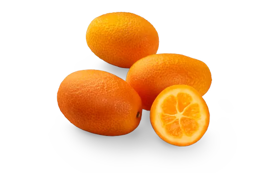 Kumquats are a citrus fruit with an unexpected property: the orange peel is perfectly edible after washing. The small fruits, 3 to 4 cm in size, most resemble mini oranges. The taste is also similar: spicy, a little bit sour to sweet.